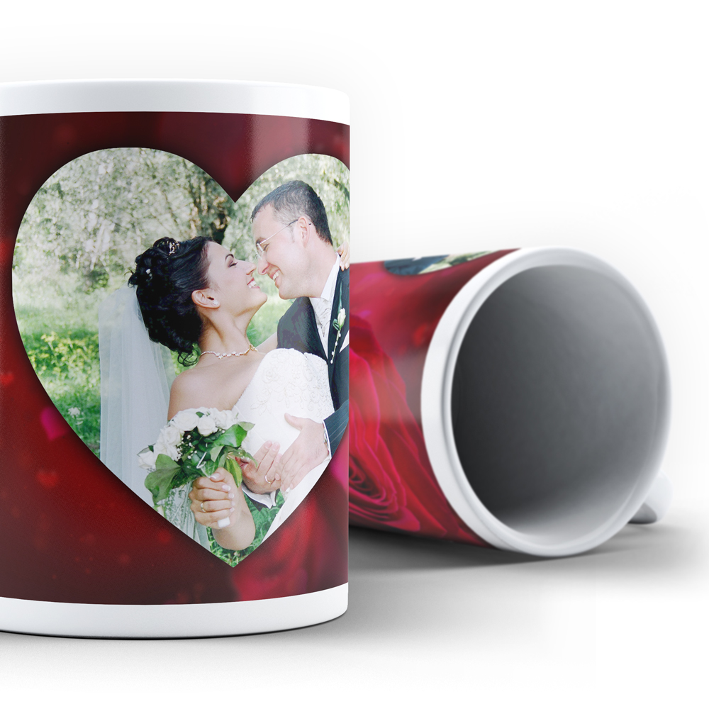 Das Herz symbolisiert seit alten Zeiten Liebe und Zuneigung, was hier von den samtigen roten Rosen noch unterstrichen wird. Das Besondere daran: Das Rosenmotiv zieht sich nicht nur um die gesamte Tasse herum, sondern die Rosenblüten bilden eine Herzform. Schöner kann man seine Zuneigung nicht ausdrücken! Das Foto, das von dem Herzen umrahmt wird, wählen Sie selbst aus und machen dadurch dieses Geschenk zu etwas ganz Persönlichem. Wenn Sie die Fototasse Herz dann noch mit ausgewählten Leckereien wie zum Beispiel Pralinen füllen, haben Sie ein ganz besonderes und sehr liebevoll gestaltetes Präsent. Aber auch sich selbst können Sie damit beschenken, denn ein Kaffeebecher mit dem Foto Ihrer Lieben oder einer geliebten Person eignet sich auch zum verschönern Ihres Schreibtisches.